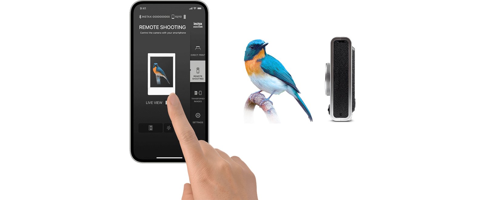 Send images in your smartphone to the camera body and use them as instax prints.