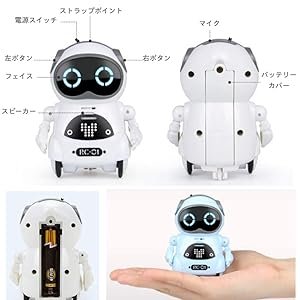 Introducing a smart robotIntroducing the cute mini sized smart robot “Pocket Robot”. Fun to play and learn English! Available in three colors: white, pink and blue. | English StudyYou can also expect it to be educational tool by talking in English and directions. | Mini SizeIntroducing a cute communication robot (English only) that can be placed in the palm of your hand or in your pocket. |